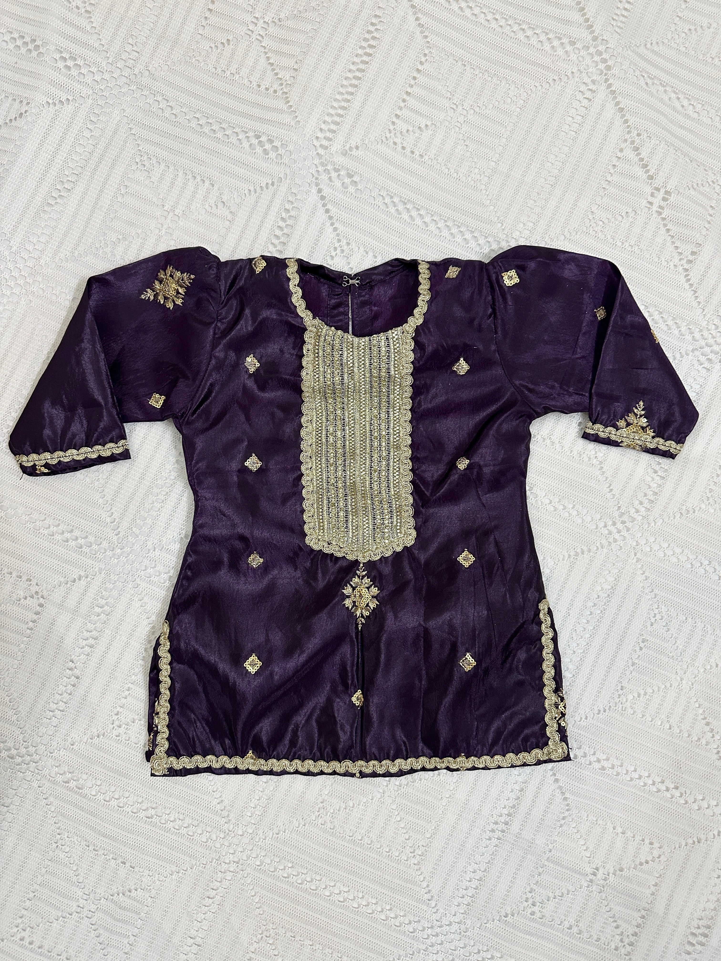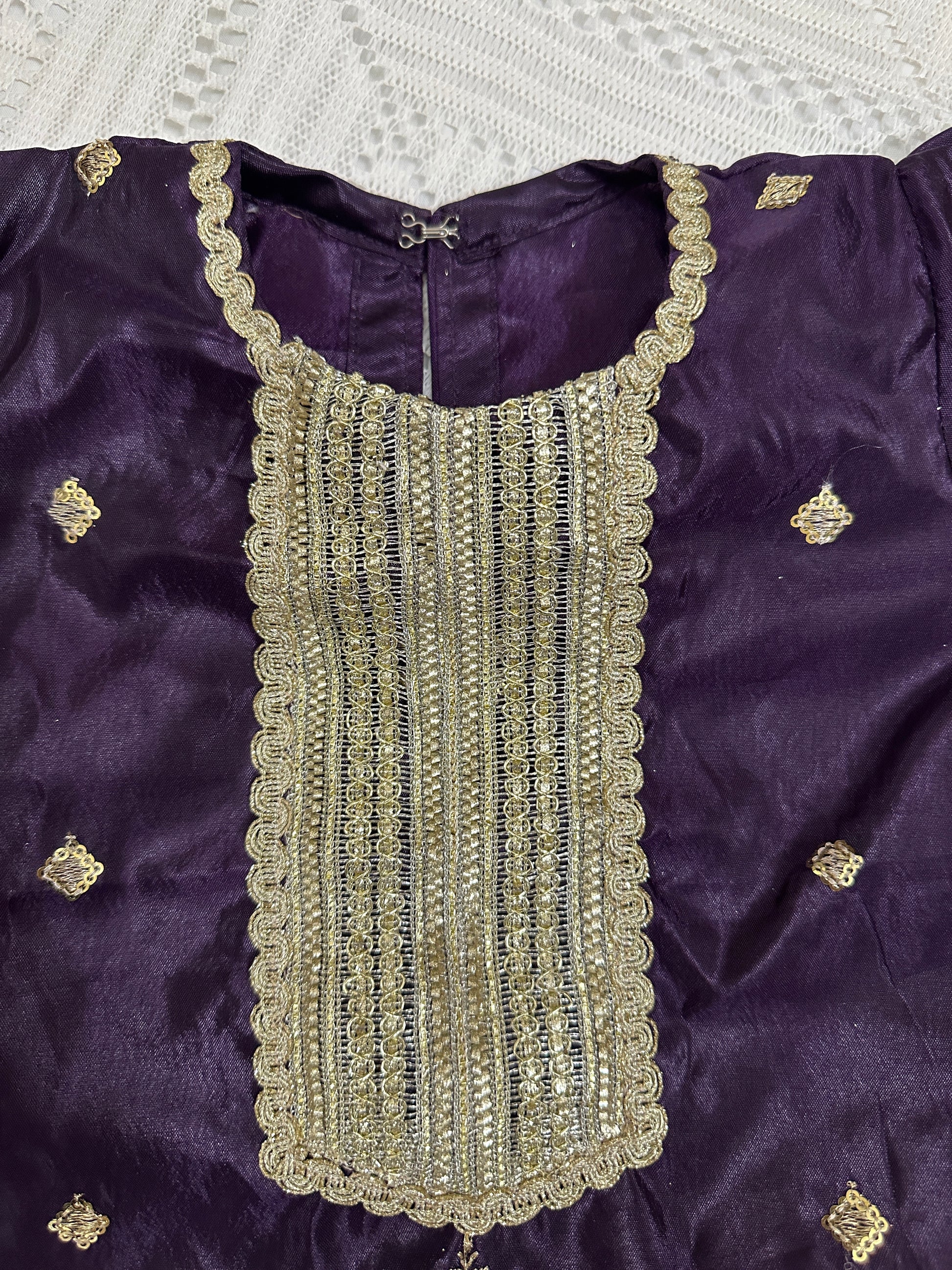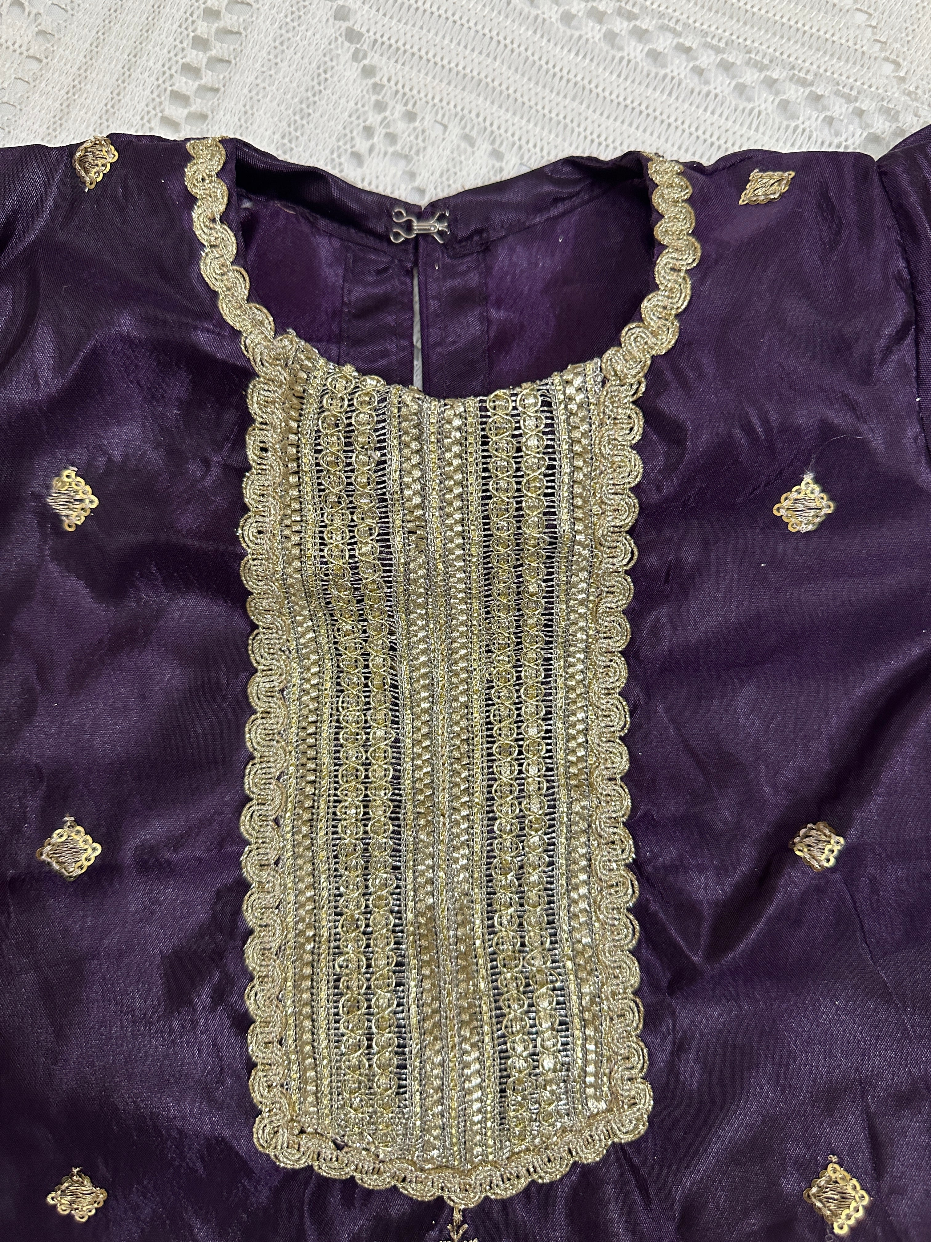 💜Purple Fancy Silk Shirt with Pink Tulip Shalwar and Net Dupatta