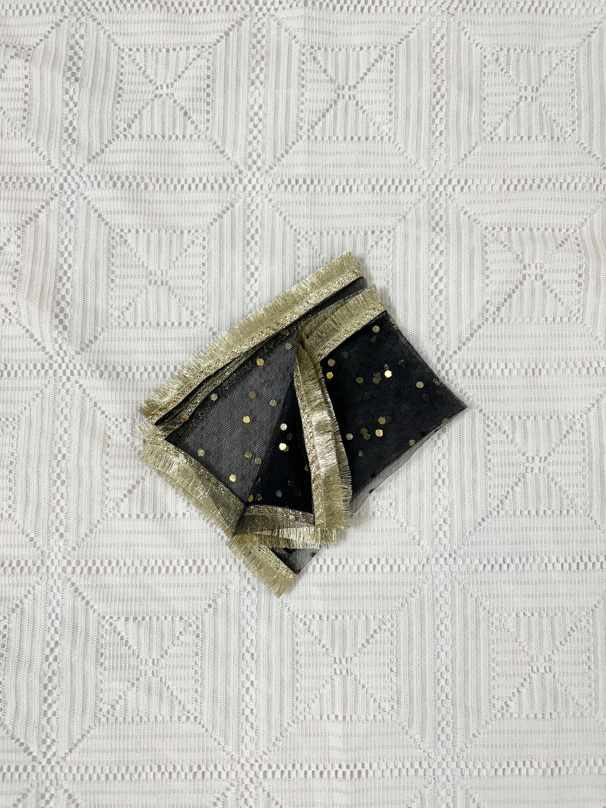 π€ Elegant Design: A beautifully stitched black silk frock with V-yoke golden detailing, paired with a chic tulip shalwar and a delicate net dupatta adorned with golden accents.