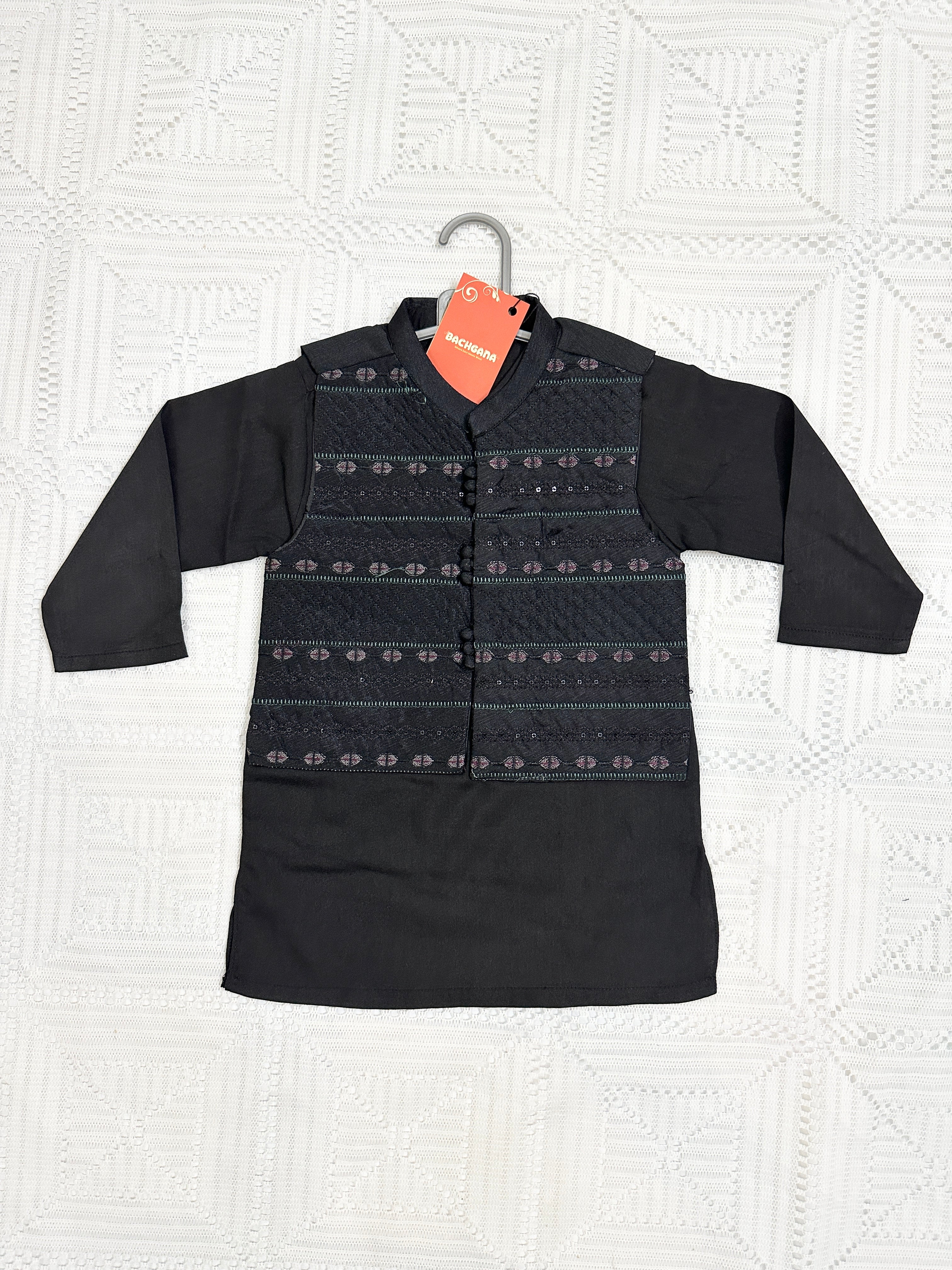Black Kurta Shalwar with Premium Embroidered Waistcoat - New