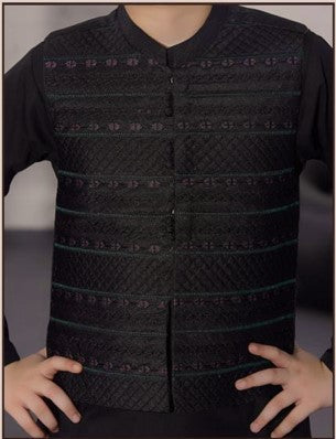 Black Kurta Shalwar with Premium Embroidered Waistcoat - New