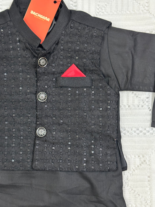 Black Kurta Shalwar with Fancy Waistcoat - New